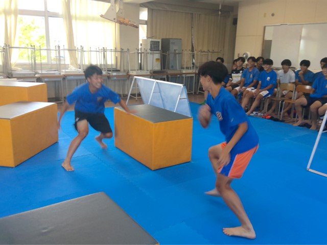 9月6日(土)、本校の文化祭「丘陵祭」最終日に、常滑市内の施設 Gruun さんのご協力をいただき、「パルクール鬼ごっこ」を開催しました。