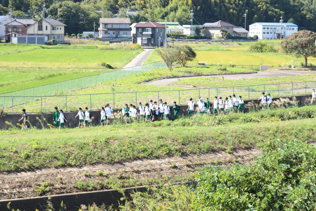 今年度も常滑高校の恒例行事”闊歩”を行いました。出発式前日までは雨天が多く心配でしたが、当日は快晴となり絶好の闊歩日和となりました。出発式では校長先生から闊歩には50年の歴史があることに触れていただきながら、全員で乗り越えていこうとお言葉をいただきました。道中では楽しく歌を歌いながら歩く生徒もいれば、真剣に前だけを向いて歩く生徒もいました。約20㎞の道のりをPTAの方々のお力もいただきながら全員無事に学校へ帰ってくることができました。心身ともに鍛え上げることができた1日となりました。