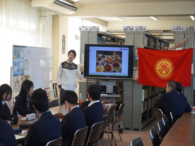 講演では、JICA海外協力隊としてキルギスで活動した経験から、現地の文化や多様性についてお話ししていただきました。日本とは異なる授業の様子や食生活について、生徒は興味津々な様子で、質問が絶えませんでした。異文化理解や海外協力など、自分の視野を広げる良い機会になったのではないかと思います。