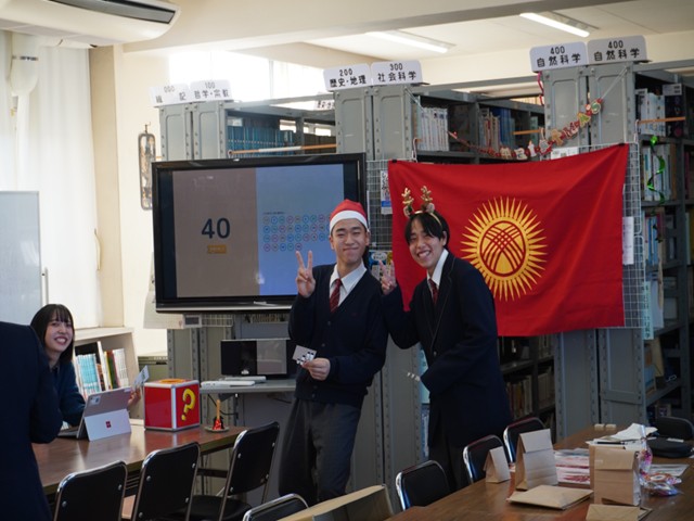 毎年3学期の保護者会期間中に行っています。図書委員会とESS部、文芸部などの文化部の発表の場としています。最後はビンゴゲーム大会で、クリスマスプレゼント!